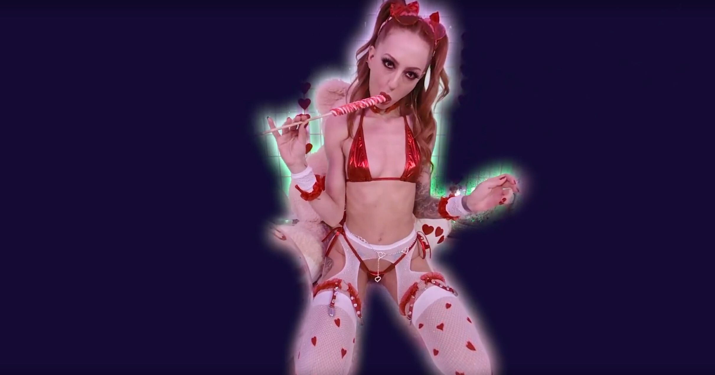 Dive into Octavia Red's tantalizing 8K passthrough VR scene. Watch her indulge in a sweet, spicy show with liquorice and lingerie teases. Experience the intensity now.