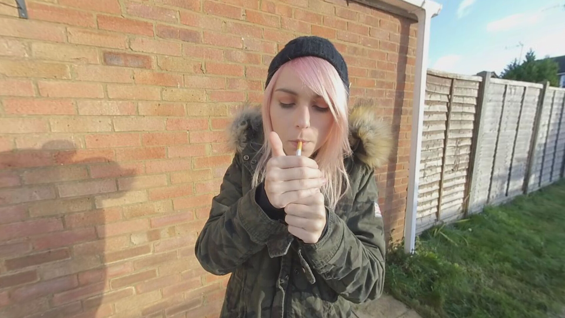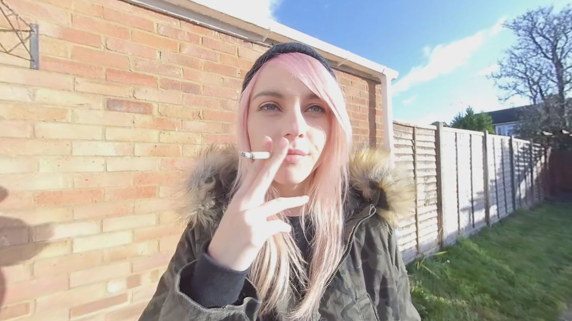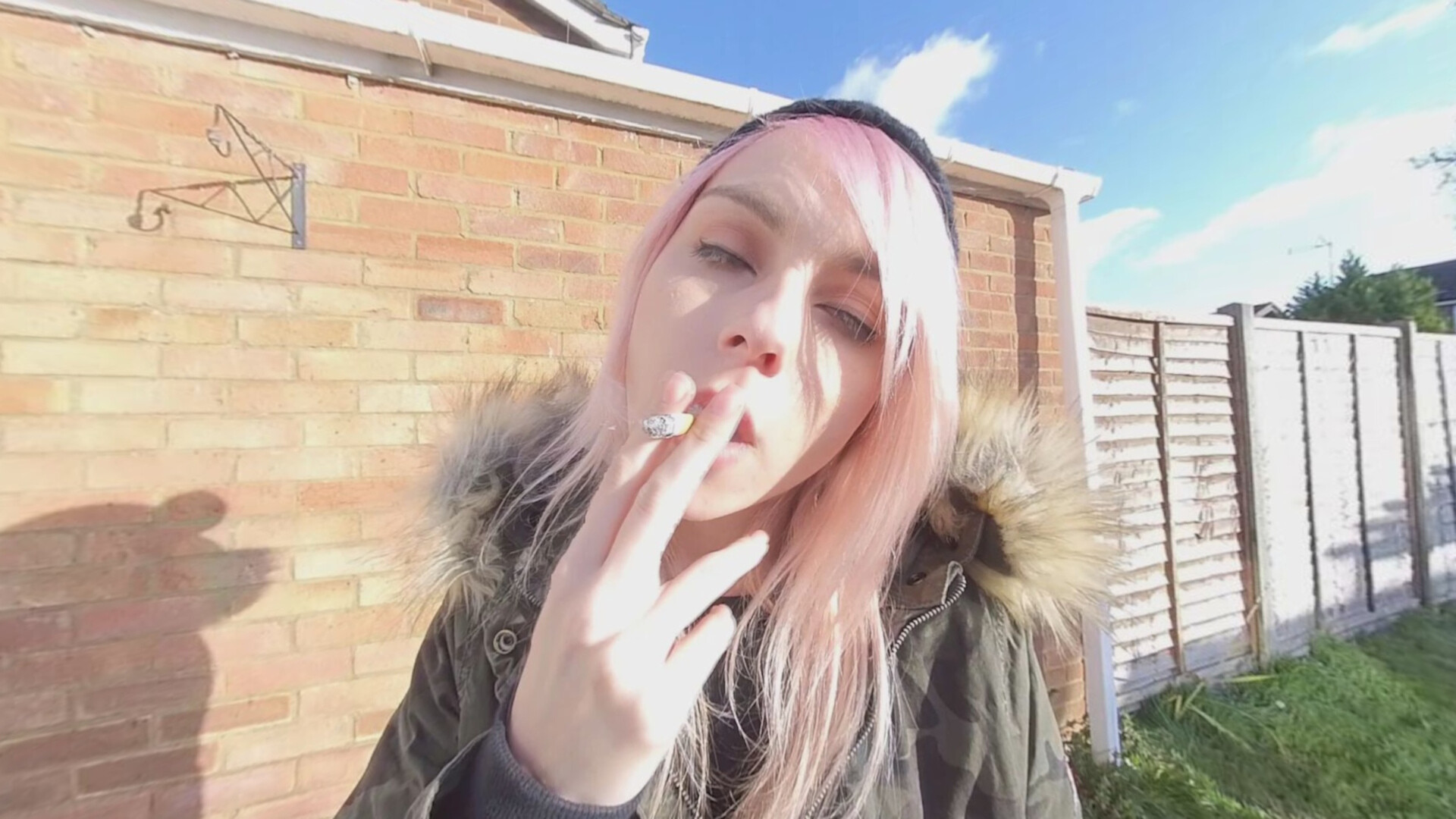 The beautiful Chloe Toy has a smoke in her garden, wearing a very comfy but loose fitting outfit, if you look closly you may just get a delightful nip-slip as she blows smoke for your pleasure!