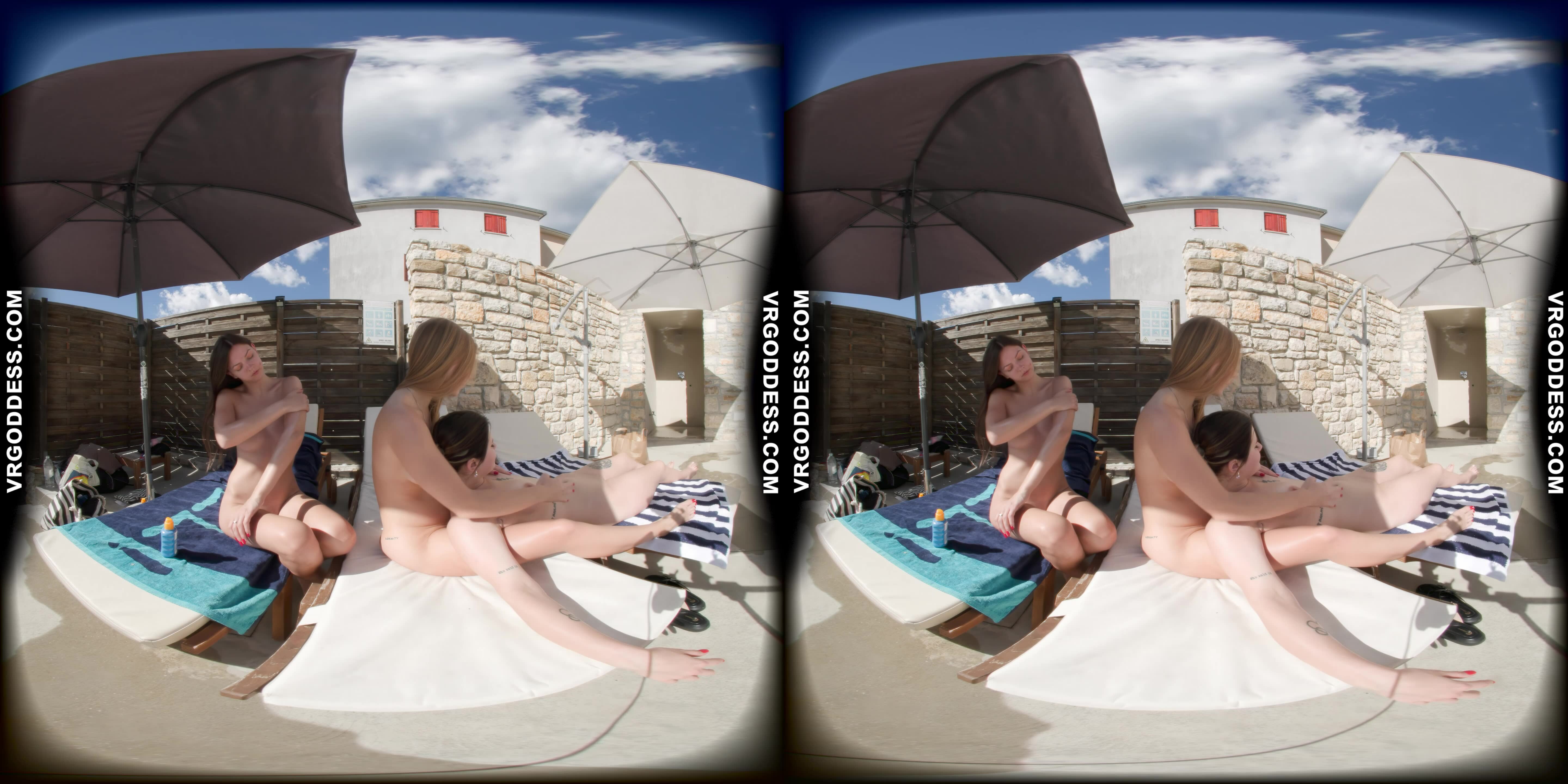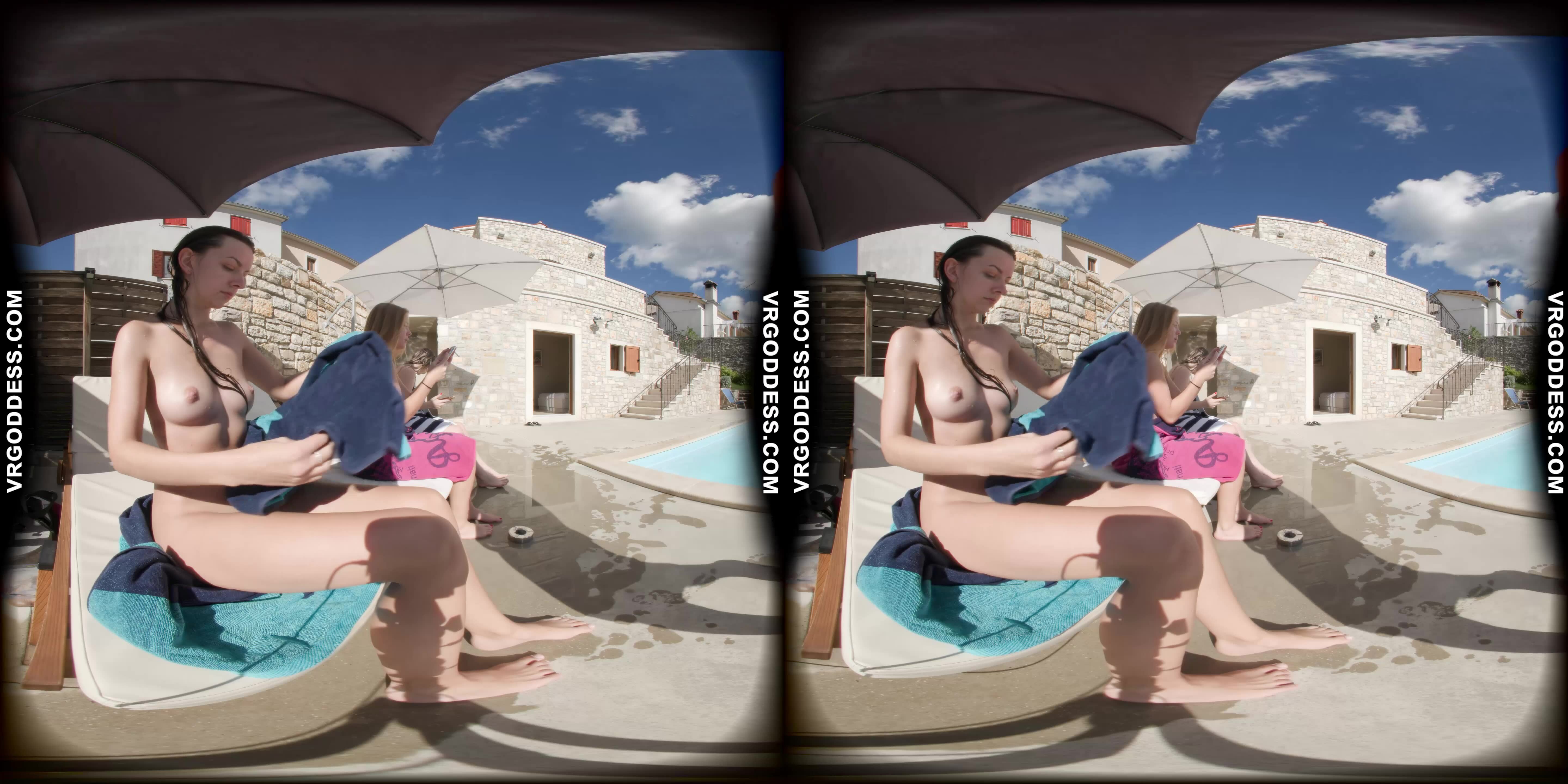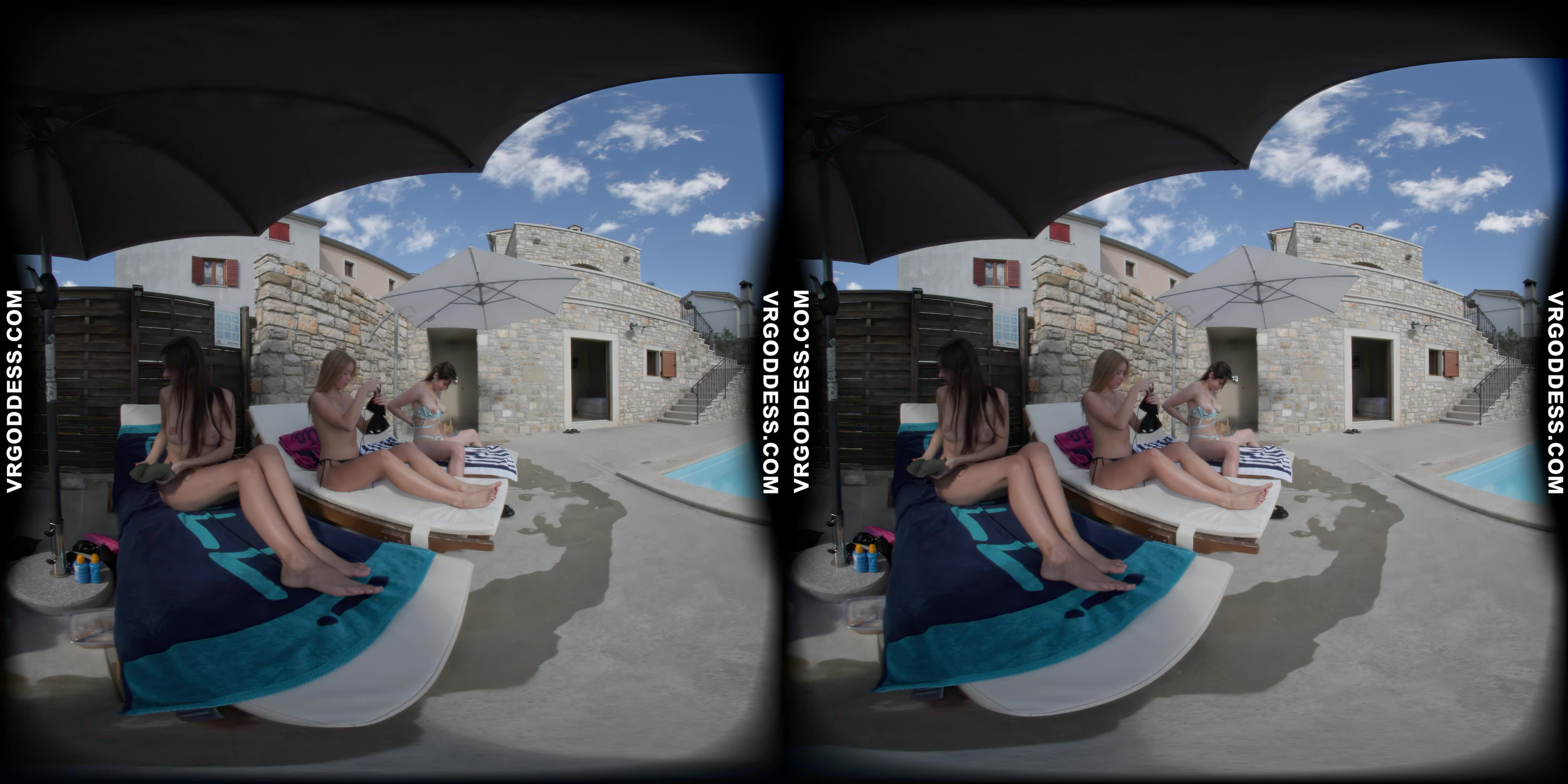 Man, I gotta tell ya, diving into this VR scene with Kristina Emmux and Rebeka Ruby is like stepping into a damn dream at an Italian villa. Right from the start, the poolside vibe hits you hard—these two are just lounging, naked under the sun, and the tension is already off the charts. You can feel the heat, and I ain’t just talkin’ about the weather, ya know?