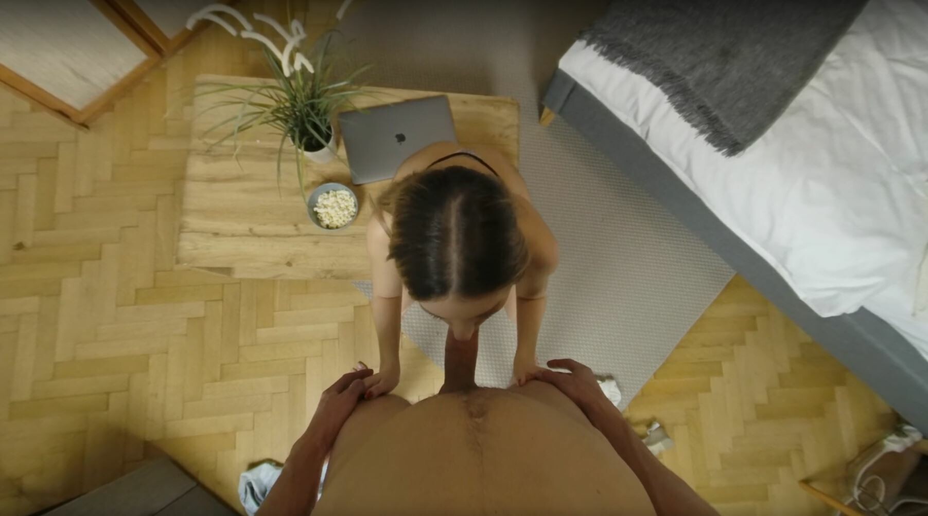 It’s a beautiful night and you have nothing to do. So you make popcorn with your girlfriend and want to watch an erotic video. After a while of eating, Rebecca discovers your cock right in the popcorn and is surprised. Because the porn video turned her on and she is now horny, she starts playing with your cock. You will see amazing passionate blowjob and handjob with her masterpiece techniques. And for all that, you give her your cum on popcorn, which she eats with relish.