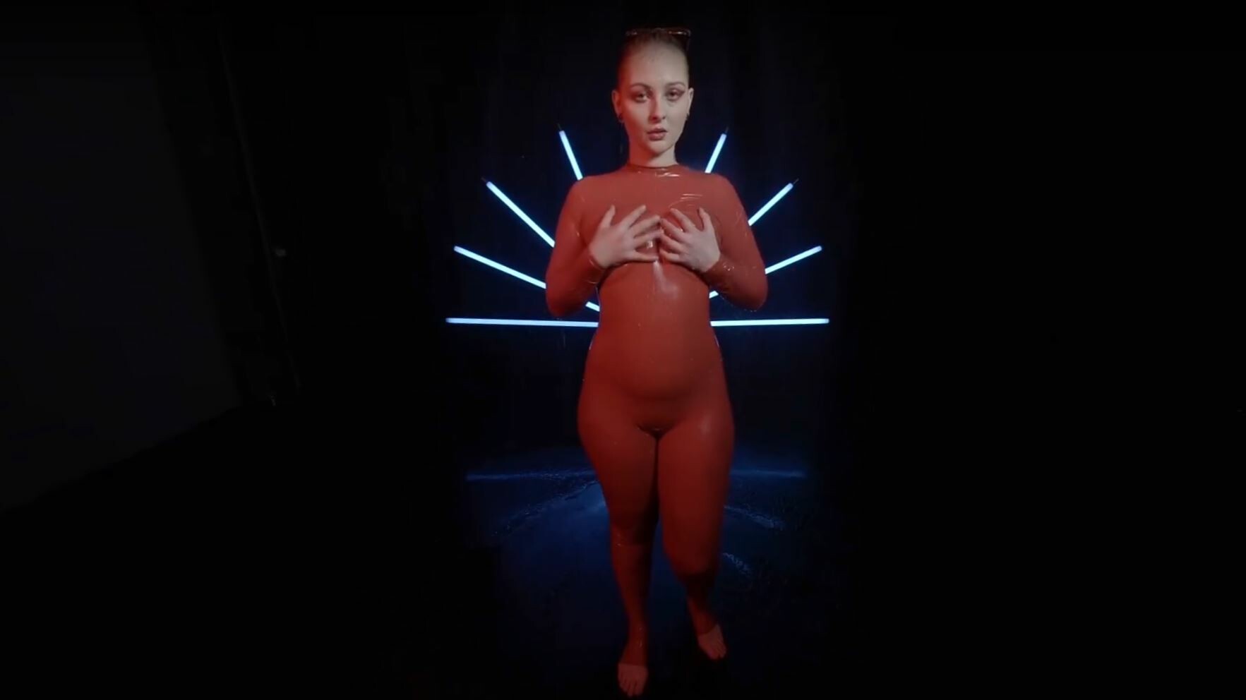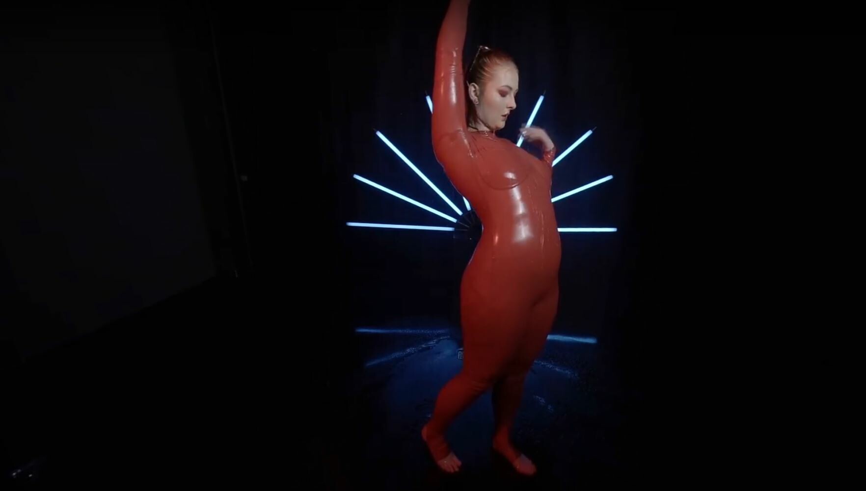 | Video Title | Red Latex Lady Takes A Shower |