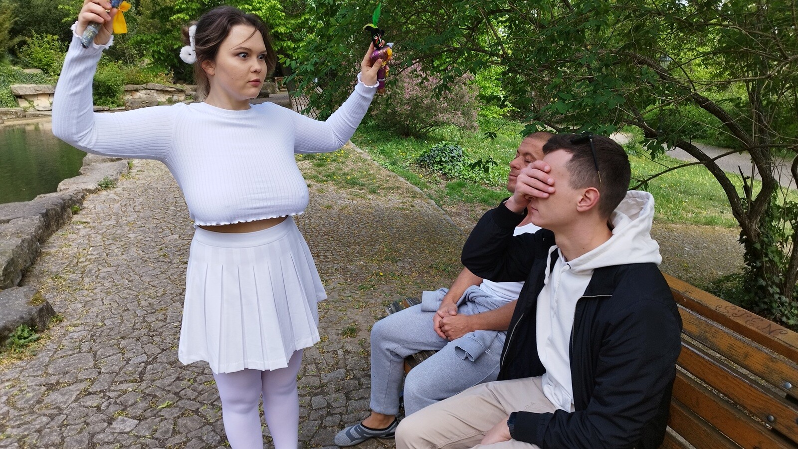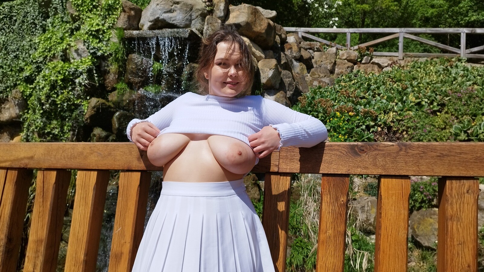 Put on your virtual reality (VR) headset and see a newbie with natural tits the size of Texas, PeachyAlice, get her hairy cunt slammed by giant cocks in this three-section slam fest. Filmed up closefrom 180 degrees virtual reality, you will experience what it would be like to direct this eager-to-please newcomer. Your behind-the-scenes (BTS), aka voyeur view, starts with prim and proper-looking Peachy Alice, who is very conservative and dressed in all white. Peachy, Alice looks like abusty angel as shegrabs the giant dicks of Matt Bird and Charlie Dean. The thick girl pulls off herwhite stocking and down her top to reveal her huge natural tits. Peachy Alcie talks dirty as she givesa double blowjob to Matt and Charlie, gagging on their monster cocks.Matt and Charlie undress thechubby girl with giant boobs and a fat ass. Peachy Alice has Matt finger her hairy pussy while shestrokes the long cock of Charlie. Charlie bends over the horny PAWG and bangs her balls deep inher bush-covered cunt with his big cock. Submissive Peachy Alice orders Charlie to spank her bigass while he pounds her pussy while giving head to Matt. Peachy Alice’s big boobs bounce as Matthammers her hairy hole while she uses a vibrator on her clit until she cums. Matt continues to ramand rail Peachy Alice until he shoots his cum inside her for a creampie that flows out of her. Makesure to keep on your VR headset as Busty Peachy Alice is still horny, and she tells Matt and Charliethat they are going to butt fuck her fat ass in part two.
