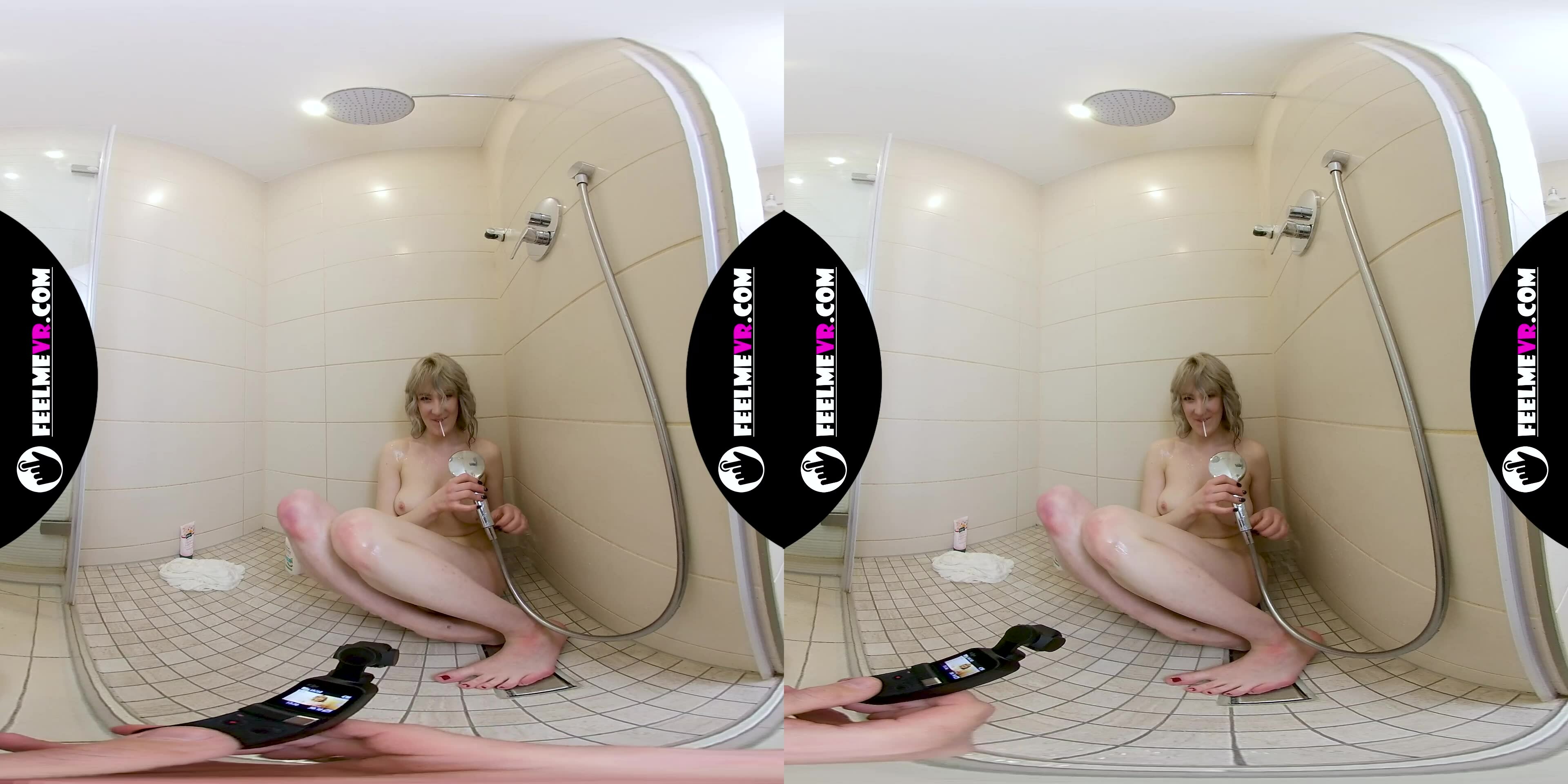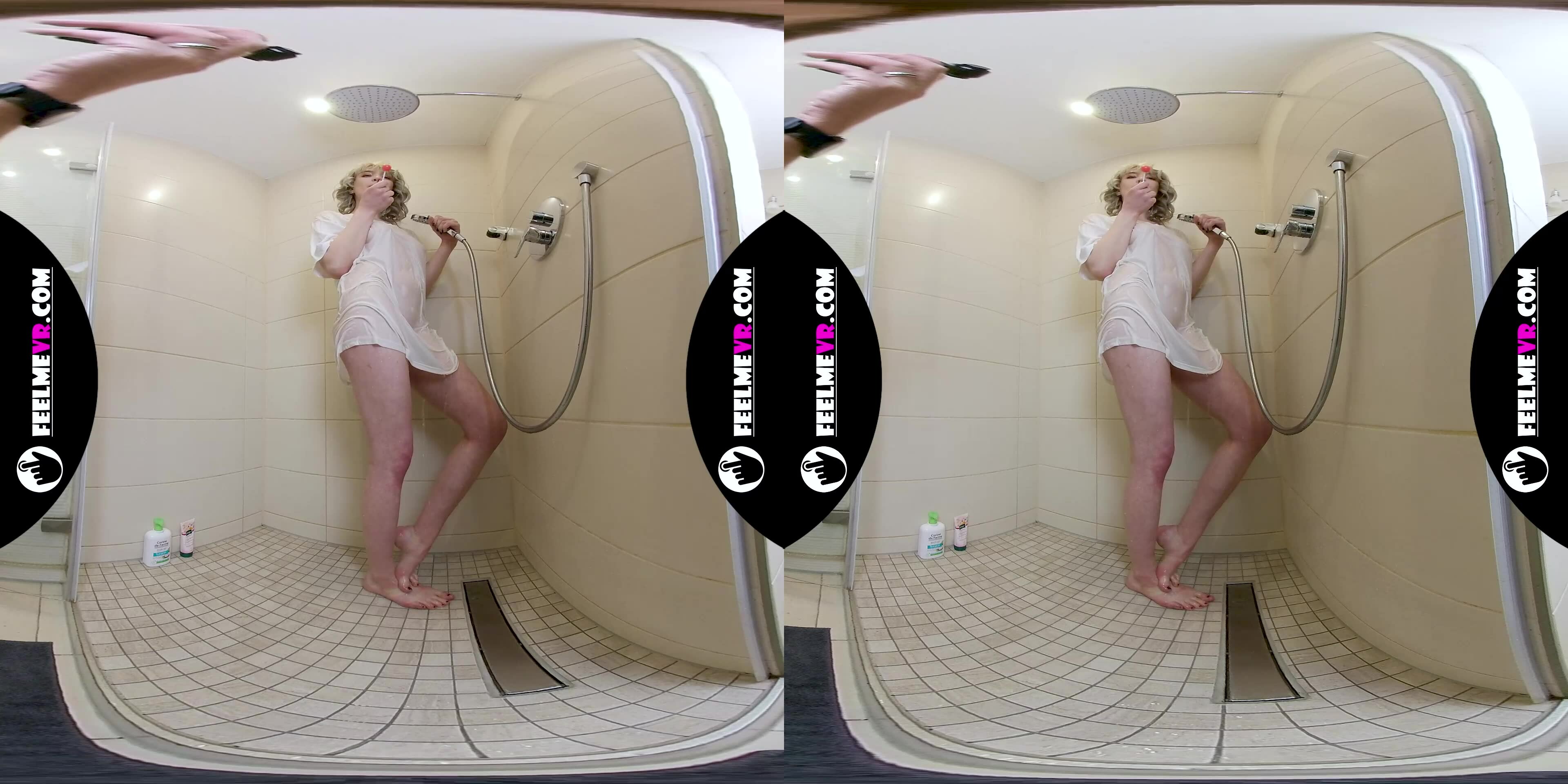 Vr180 video with busty teengirl Limona naked in the shower, video by Higinio Domingo
