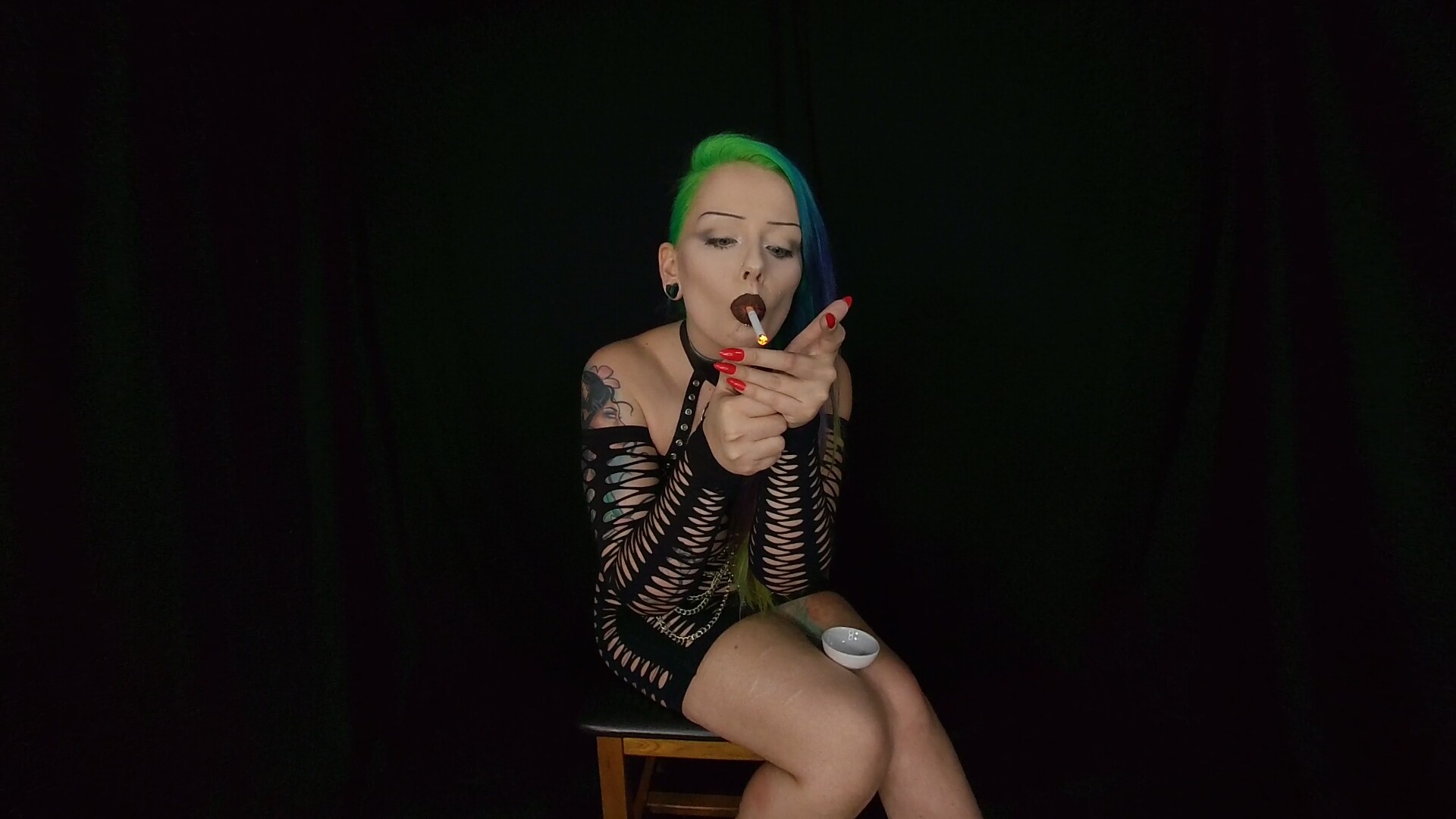 Stunning smoker Pussykat cuts and tears her clothes off for you while smoking 2 cigarettes for you.