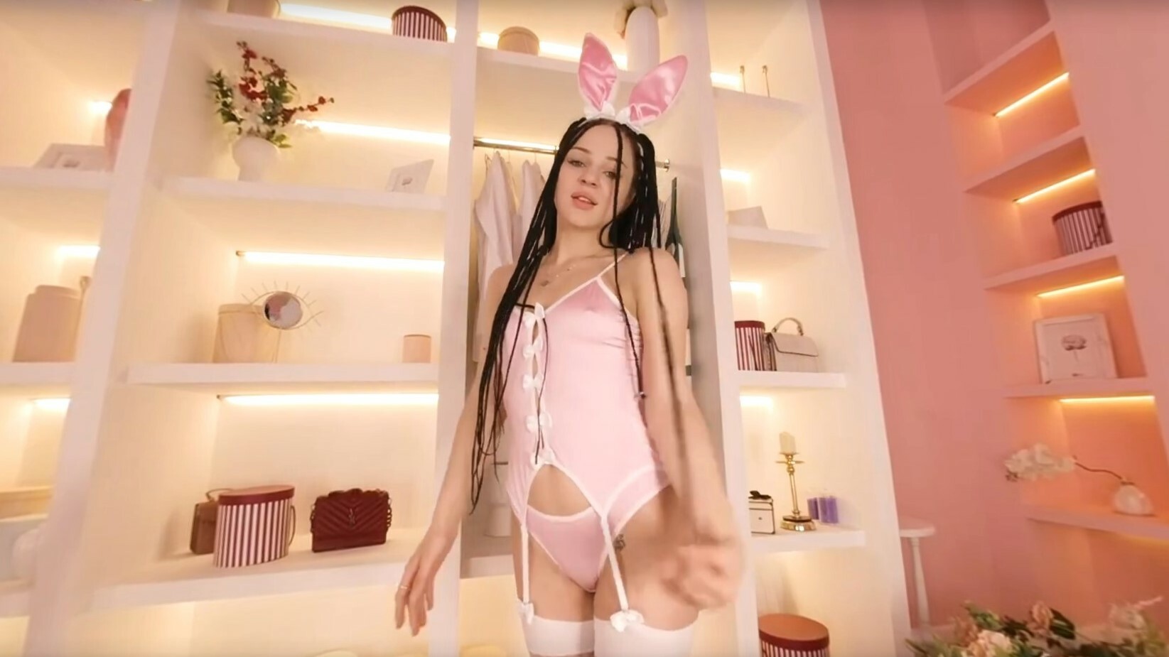 Witness Melena Maria Rya's breathtaking solo VR performance in stunning pink lingerie. Feel her teasing touch and gaze upon her gorgeous body as she slowly strips down to nothing. Experience it now!